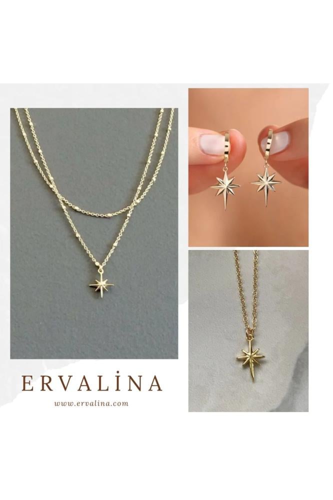 - اسم المنتج: Ervalina مجموعة أقراط وقلادة بتصميم نجمة الشمال