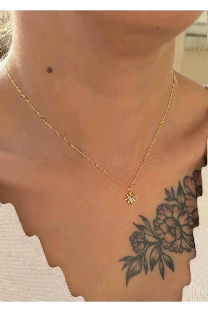- اسم المنتج: قلادة نسائية على شكل قلب ذهبي مع نجمة شمالية وحجر الزركون